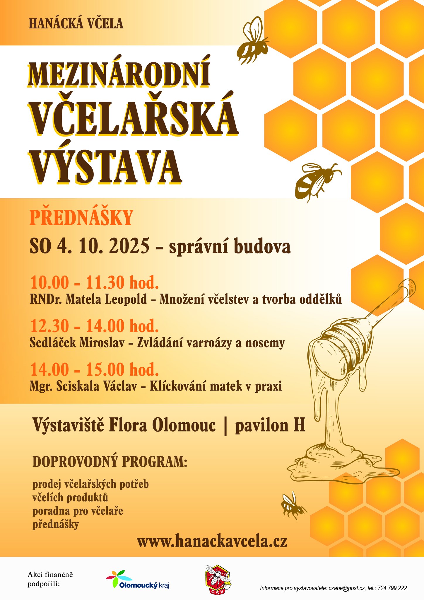 Včelařské přednášky na výstavě Hanácká včela budou probíhat v sobotu 4.10.2025